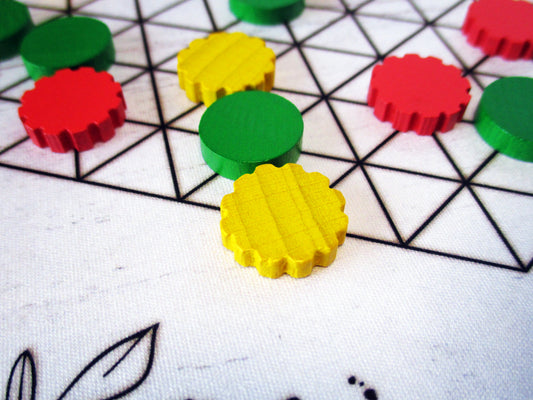 タンブルウィードとスライドの作者の第三のゲームであるフラワーショップは、各プレイヤー色と中立色の3つの色を使用する、植物をモチーフとした接続-領土ゲームです。配置制限を利用して自分の花をつけた植物をうまく成長させましょう!